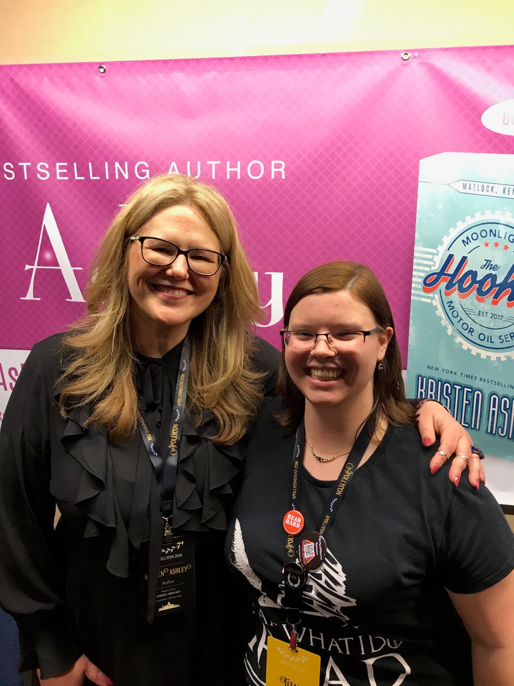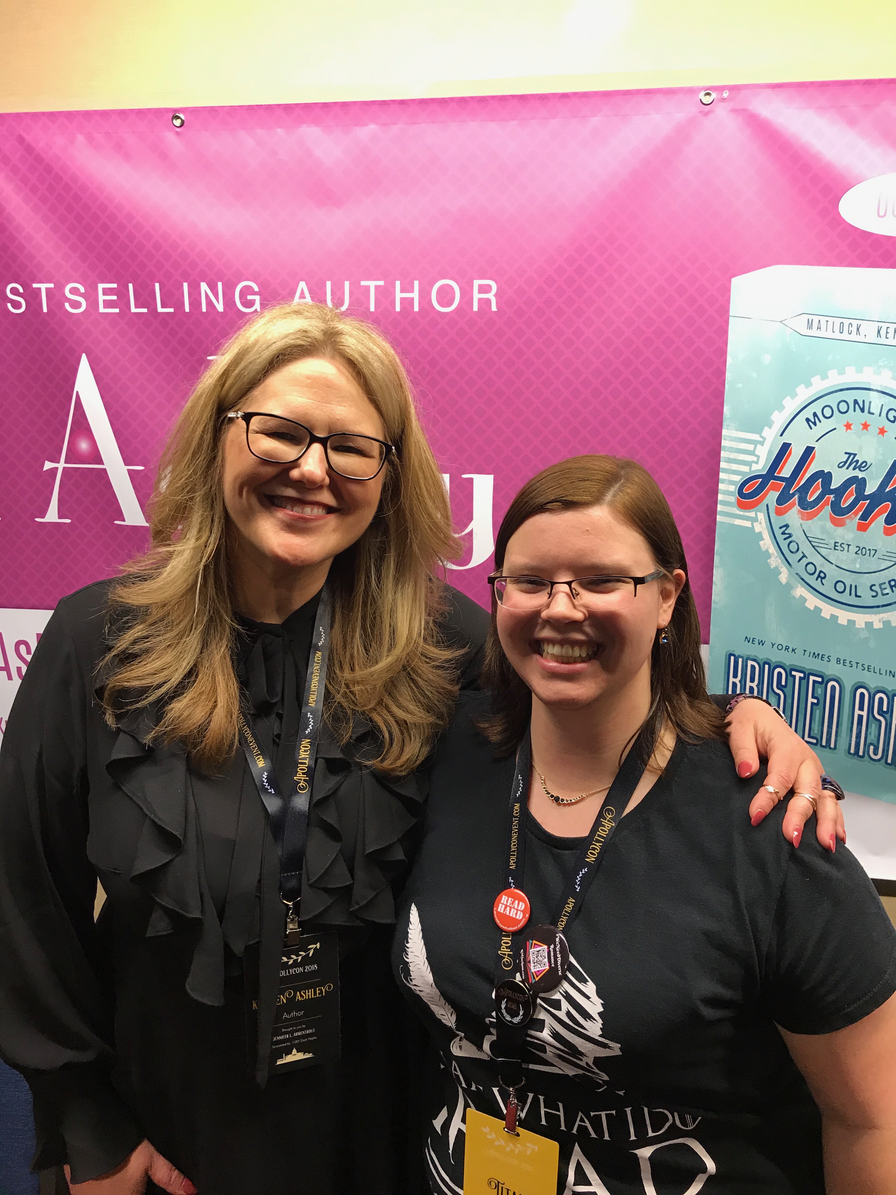 Kristen Ashley. That name evokes the most alpha of heroes and the most bad-ass of heroines. Her books are almost always 500+ pages of pure craziness and heart. By the end of her books, you are so totally invested in her characters that you feel like they’re your best friends. I actually reread Rock Chick Beginnings last night on impulse. Kristen does not shy away from putting her characters through hell and back but they always come out the other side stronger. Another strength of Kristen Ashley is her world creating. Her Fantasyland series is crazy vivid and detailed. Even her contemporary worlds are beautiful crafted with supporting characters just as interesting as the main characters. Plus her contemporary series have enjoyable crossovers which is always an enjoyable Easter-egg. Honestly, I’ve only been reading her books a little over two years and I can’t believe how much I’ve been missing out. I find myself randomly picking up her books for a reread when nothing else is appealing to me. And I’ve been listening her audiobooks on and off as well. I was lucky enough to meet and worship at the feet of Kristen Ashley at Apollycon 2018!